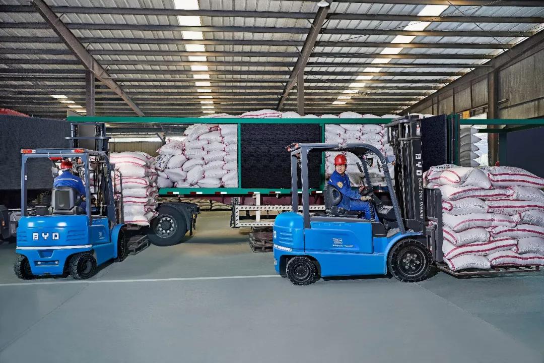 一直以來,比亞迪叉車就以擁有強勁動力的優勢而廣泛應用于負荷重、工況惡劣等行業,并以其優越的使用性能為客戶帶來不可比擬的價值。其在飼料行業的成功應用,也正演繹著比亞迪叉車的與眾不同。